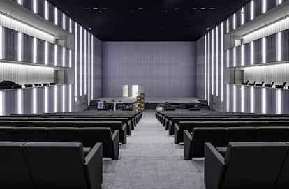 La tecnología, junto con la sostenibilidad, son los puntos fuertes del edificio. Todas las aulas de clase llevan incorporadas monitores, con tecnología Samsung –118 en total– de nueve metros cada uno, y 52 pantallas de 55 pulgadas repartidas por las aulas de trabajo, así como una pantalla LED de 50 metros cuadrados que ocupa el escenario del auditorio, revestido este con policarbonato ondulado, un material que favorece la acústica del espacio, y en el que se han instalado 600 butacas.