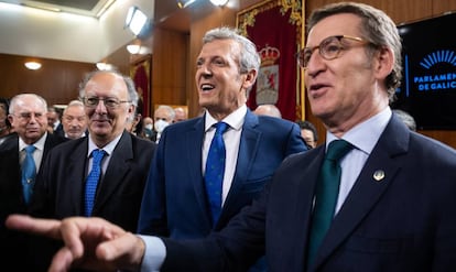 Lo ha hecho ante más de medio millar de invitados, repartidos en varias salas del Pazo do Hórreo, sede del Parlamento de Galicia, entre los que se encontraba el presidente saliente y líder del PP, así como la vicepresidenta segunda del Gobierno, Yolanda Díaz; así como los presidentes de Castilla y León, Alfonso Fernández Mañueco; Madrid, Isabel Díaz Ayuso; y Murcia, Fernando López Miras, entre otras autoridades y personalidades del mundo civil.