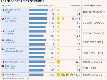 Al menos son cinco los bancos que operan en España que han decidido elevar las rentabilidades de sus depósitos esta misma semana. Deutsche Bank abrió la veda con su Depósito Solidez DB para nuevos clientes. Paga un 0,15% TAE a 12 meses, un 0,40% TAE a 18 meses y un 0,60% TAE a 24 meses. El producto se puede contratar a través de la Banca de Internet, por teléfono o en las oficinas de la entidad. La inversión mínima es de 3.000 euros hasta 100.000 euros.