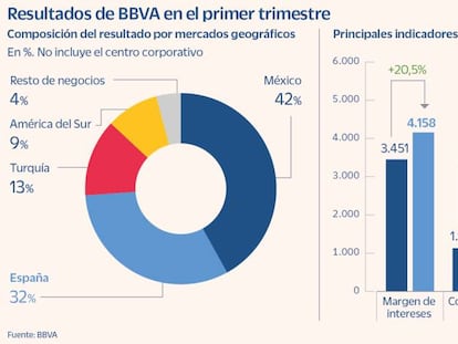 México es el motor del negocio de BBVA. En el primer trimestre de 2022 registró un beneficio de 777 millones, el 49% más. El país latinoamericano representa el 42% del beneficio total del banco.