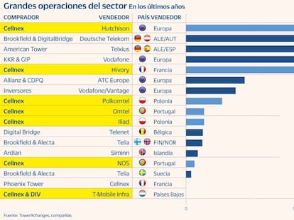 La compañía ha cerrado transacciones de calado, entre las que destaca la compra de las torres de Arqiva, por cerca de 2.300 millones de euros; Shere Group, por 400 millones; así como los emplazamientos de la citada Hutchison. El grupo no detalló esta última transacción, que se incluyó en la compra de las torres de Hutchison en Reino Unido, Austria, Irlanda, Dinamarca, Suecia e Italia, por 10.000 millones, incluida la emisión de nuevas acciones por el 4,8% de su capital, que fueron a manos de la empresa asiática.