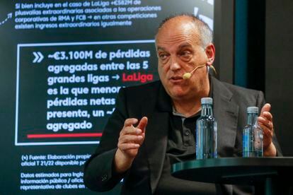 “No vamos a entrar en un campeonato del mundo de pérdidas. No vamos a abrir el grifo para ver qué propietario es el que más dinero pone. Tenemos que seguir el camino de la sostenibilidad económica, el que ha permitido no generar ninguna deuda con la Agencia Tributaria durante los años del Covid. Esto tiene que ser motivo de orgullo del fútbol español”, ha valorado el presidente de LaLiga, Javier Tebas, este jueves. De los 42 equipos profesionales, nueve registraron pérdidas en la temporada 2021-2022, aunque según el director general de la patronal, Javier Gómez, solo tres incurrieron en números rojos por dificultades en su negocio, consecuencia de la pérdida de categoría.