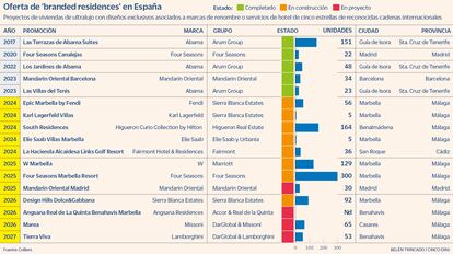 Como en Florida desde hace años, España está atrayendo ahora a este tipo de proyectos. Solo para este año y hasta 2027, hay iniciativas para levantar casi 1.000 viviendas ligadas a hoteles como Four Seasons, Mandarin o W y a marcas como Karl Lagerfeld, Fendi o Lamborghini, entre otros (ver gráfico), según el informe Branded Residences 2023 presentado ayer por Colliers.