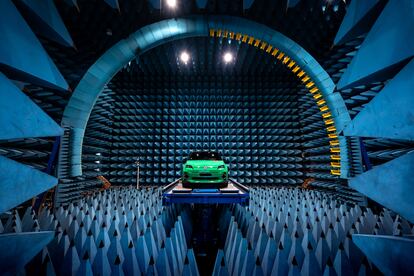 Sin embargo, uno de los elementos más impresionantes de las 125 hectáreas que conforman el Technocentre —lo que equivale a unos 250 campos de fútbol— se esconde en el centro de simulaciones. Allí, se encuentra una especie de bola gigante que se mueve de formas inesperadas llamada Roads, el Renault Operational Advanced Driving Simulator, por sus siglas en inglés. Esto es un simulador en el que se puede introducir un coche con un conductor y probar situaciones de conducción reales. “Permite a los usuarios conducir el gemelo digital y probar todo tipo de escenarios, incluidos los más peligrosos. Es un valioso complemento a las largas y costosas pruebas de carretera que se realizan al final del proceso de desarrollo del vehículo”, explica la compañía.