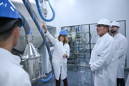 La nueva fábrica, dotada de la última tecnología y con vocación de ser sostenible —toda una pared está cubierta de paneles solares, y la empresa explica que recicla al máximo los deshechos líquidos que salen de los procesos químicos— tiene 7.500 metros cuadrados y en total la empresa AGC en Malgrat cuenta con 360 trabajadores. Desde que los japoneses compraron la fábrica, se han contratado 80 empleados cualificados. En este lugar se fabrican los ingredientes esenciales que componen los medicamentos contra el cáncer y las enfermedades raras, y con la nueva planta se ha incrementado la capacidad de producción un 30%. “Hemos construido esta fábrica con la opción de duplicar las instalaciones cuando necesitamos aumentar otro 30% más la producción”, explica Ana Pilar González, jefa de operaciones de AGC Pharma Chemicals.