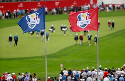 A las tres de la tarde, en cuanto acaban los entrenamientos y los enfrentamientos de la mañana, las riadas de visitantes dejan de perseguir a las estrellas y se redirigen hacia la carpa de ventas. En pocos minutos, apenas se puede caminar y la cola para pagar suma más de mil personas. No es de extrañar que sea, de lejos, el segundo generador de ingresos de la Ryder Cup. Solo por detrás de una entrada cuyo coste diario para los días de competición (viernes y sábado) asciende a 750 dólares. Se agotaron en 48 horas. Así es el nuevo “laboratorio viviente” de los negocios.