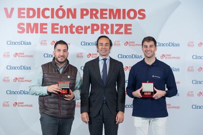 El Auditorio Rafael del Pino de Madrid acogió ayer la V edición de los Premios SME EnterPrize, organizado por Generali y con CincoDías como medio colaborador, que reunió a emprendedores, representantes del ecosistema empresarial y miembros del jurado. Los galardones recayeron en la empresa Academia de Inventores, ganadora en la categoría de impacto social, y Uraphex, premiada en sostenibilidad medioambiental. Ambas empresas fueron reconocidas por el impacto transformador de sus proyectos.