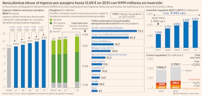 Otros capítulos importantes del tercer DORA son los gastos de explotación (OPEX) y el coste medio ponderado del capital (WACC por sus siglas en inglés) al que aspira la empresa. La propuesta de OPEX regulado es 1.988 millones de euros en 2027 y 2.311 millones en 2031, con un crecimiento anual del 3,8% y especial tirón del mantenimiento (+7,4%) y la seguridad (+6%). “Esta propuesta tiene en cuenta la concurrencia de varios factores: medios humanos para afrontar el ciclo inversor, incremento de tráfico, requerimientos normativos (con una fuerte componente de seguridad y mantenimiento), medidas para el sostenimiento de la calidad en infraestructuras congestionadas, puesta en servicio paulatina de nuevas superficies y refuerzo de servicios durante las obras para el sostenimiento de la calidad a los usuarios”, explica Aena en el comunicado remitido al regulador bursátil.