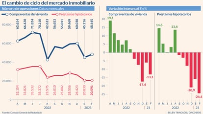 Esta caída en las operaciones de compraventa resulta coherente con el desplome del 24,4% en febrero de los préstamos hipotecarios para la compra de vivienda hasta un total de 20.591.