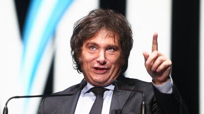 El candidato presidencial argentino Javier Milei, del partido La Libertad Avanza, habla durante el acto de cierre de su campaña electoral.MATIAS BAGLIETTO (REUTERS)