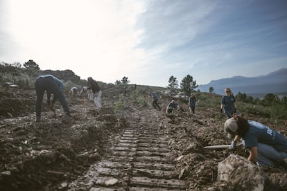 El Valle de los Sueños, repartido en varios municipios, suma 150 hectáreas de terreno seco, pedregoso y empinado. “Es el tipo de terrenos que priorizamos”, señala. En los tres años que llevan trabajándolo han conseguido que comiencen a arraigar de nuevo los pinos, los robles y, aunque no es oriunda de la zona, pero se adapta bien al clima de la región, también la cornicabra.