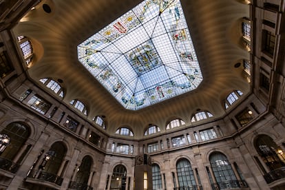 Imponente en el centro de Madrid, la sede del Banco de España tiene cierto aire de fortaleza, con sus muros gruesos y la permanente vigilancia. Ahora, siguiendo con una política de transparencia iniciada hace unos años, la institución ha decidido abrirse más a los ciudadanos y mostrar los tesoros que guarda en su interior este edificio inaugurado en 1891 y de 100.000 metros cuadrados. Para ello, a partir del 4 de octubre comenzarán a ofrecer visitas guiadas gratuitas al público general los fines de semana desde el viernes por la tarde, en una iniciativa bautizada como Puertas abiertas. Hasta ahora, se recibían visitantes, unos 4.000 anuales, pero solo de determinados colectivos como grupos educativos o asociaciones. La institución también dispone de una sala de exposiciones por la que pasan cada año entre 46.000 y 50.000 personas.