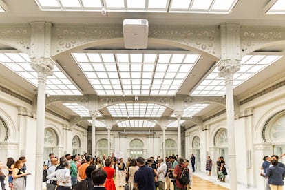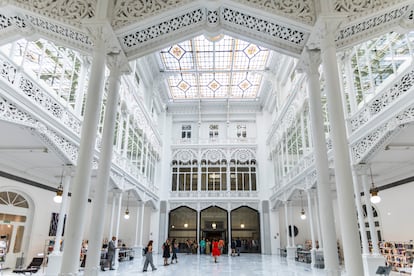 Además, los visitantes podrán pasear por el recién recuperado Salón de cobradores, que vuelve a su aspecto casi original. Esta sala llegó a tabicarse para su uso como almacén de libros de la biblioteca. Tras décadas oculto, ahora muestra sus azulejos y el hierro fundido de su estructura que, como ha dicho Ignacio García Pedrosa, del estudio Paredes Pedrosa, encargado de la restauración de este espacio, “evoca lo oriental en combinación con la arquitectura industrial”.