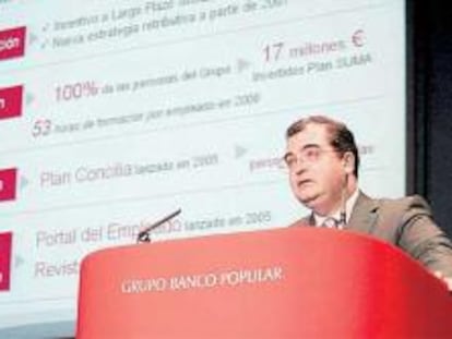 El Banco Popular ha superado las previsiones de beneficios establecidos en su plan trienal, que acaba de finalizar al ganar 1.026 millones de euros, el 16,9% más que un año antes. Ha conseguido captar 408.000 clientes netos en el año. Pese a lograr prácticamente todos sus objetivos, ha renunciado a poner en marcha un nuevo plan trienal como tenía previsto hasta hace un mes. Para este año estudia abrir varias oficinas situadas en zonas comerciales en horarios de tarde e incluso los festivos. Supera sus previsiones al ganar 1.026 millones de euros, el 17% más