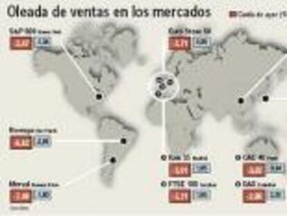 Una sesión de miedo bajista. Eso es lo que sufrieron ayer los inversores. El inicio fue malo, pero la conclusión se ha convertido en la peor desde el 15 de marzo de 2004, cuando el Ibex 35 se dejó un 4,15%. El selectivo perdió un 3,01%, hasta 14.408,3 puntos. Fadesa se resistió a los números rojos y las constructoras fueron las más castigadas.