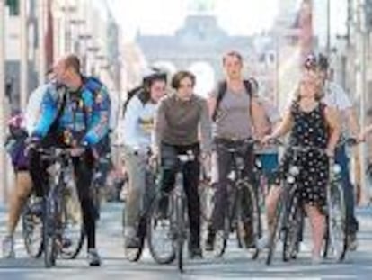 En España crece el uso urbano de la bicicleta. Un grupo de ciclistas habla de experiencias camino de la oficina