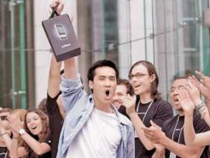 Steve Jobs está en vías de alcanzar un nuevo éxito comercial. La estrategia de marketing y publicidad realizada en los últimos meses ha provocado que la euforia se adueñara de los clientes de las tiendas de EE UU en las que se vendía su nuevo iPhone. De momento, y en un solo fin de semana, la empresa de la manzana ha vendido más de medio millón de unidades de su terminal.