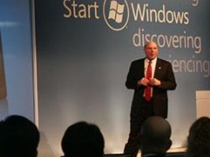 Steve Ballmer, consejero delegado de Microsoft, presentó ayer el nuevo sistema operativo Windows Mobile 6.5, con el que pretende hacerse fuerte en el negocio de los teléfonos inteligentes.