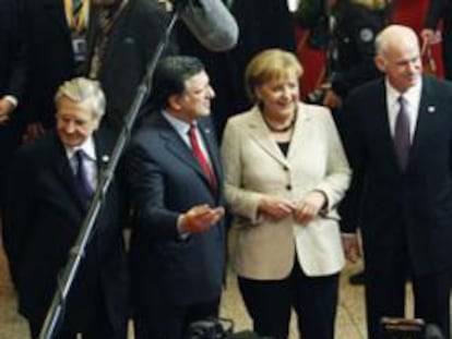 La zona euro prometió ayer una respuesta "decidida y coordinada" en apoyo de Grecia si la situación financiera del país llega a amenazar la estabilidad de la Unión Monetaria. A cambio, se exige a Atenas un recorte del déficit público más drástico de lo previsto y se ponen sus cuentas bajo la vigilancia del BCE y de expertos del FMI.
