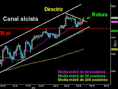 El Ibex ha puesto los 8.000 en su punto de mira tras cerrar la sesión con una subida del 1,81% gracias al descenso de la prima de riesgo. La postura del Eurogrupo y del Gobierno español de que el rescate no es un asunto urgente y el dato de empleo de Estados Unidos han permitido que el diferencial frente al bono alemán bajara hasta los 417 puntos.