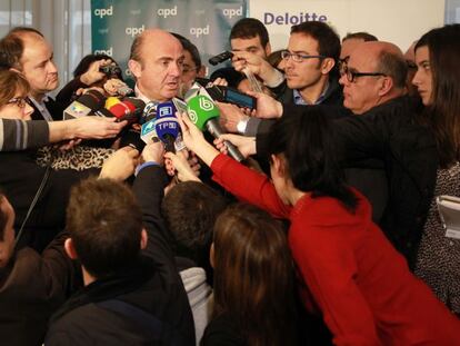 Con la economía acumulando dos trimestres consecutivos de crecimiento y el empleo anotándose los primeros avances interanuales, el ministro de Economía, Luis de Guindos, ha cambiado su discurso desde la prudencia hacia la confianza.