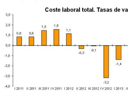 En el cuarto trimestre de 2014, el coste laboral se situó en 2.638,80 euros por trabajador y mes, es decir, un 0,5% menos con respecto al mismo período del año anterior.