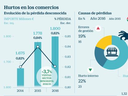 El peso de esta "pérdida desconocida" cae hasta el 0,82% del total, según Aecoc y EY Bebidas alcohólicas e ibéricos lideran los productos con mayor hurto