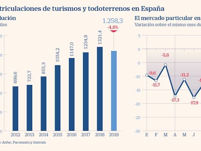 En total se matricularon 1,25 millones de turismos y todoterrenos en España en 2019, un 4,8% menos