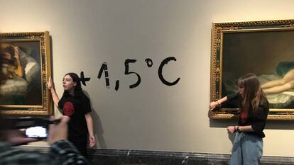 Dos activistas se pegan a los marcos de 'Las Majas' de Goya en el Prado