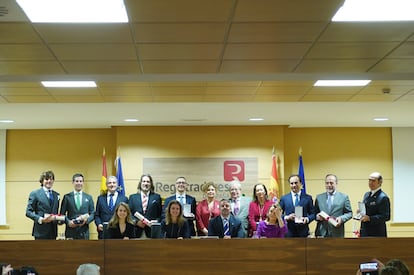 María Emilia Adán y su junta de gobierno reciben la Medalla de Honor del Colegio de Registradores