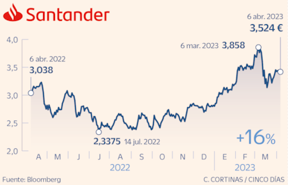 Pese a la volatilidad sufrida en el sector por la crisis de varios bancos en EE UU y la de Credit Suisse, los analistas apuestan por la banca aunque de forma más selectiva. En el caso de Santander, la diversificación geográfica de su negocio aporta una ventaja competitiva, sobre todo en países emergentes, explican en Renta 4. El 70% de las firmas de análisis que forman el consenso de Bloomberg tienen al banco con consejo de compra y el potencial de revalorización supera el 30%. Marisa Mazo, analista de GVC Gaesco Valores, es una de las más positivas ya que tiene un precio objetivo de 5,54 euros frente a los 3,5 euros actuales. Su dividendo es uno de los reclamos. Tiene un pay-out del 50%.