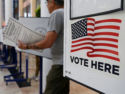 Para la mayor parte de los agregadores de encuestas (incluido el de este periódico) Donald Trump sigue siendo favorito por un estrecho margen, que se ha achicado levemente. En la plataforma de apuestas electorales Polymarket la probabilidad de victoria de Trump ha pasado del 66% el pasado martes 29 a un 58%. En otra plataforma, Predictl, las apuestas están igualadas, cuando hace una semana Trump cotizaba con una probabilidad de victoria del 60%. La empresa de Donald Trump, sin apenas negocio y que se ha convertido en un termómetro de su tirón electoral, perdió pie jueves y viernes después, eso sí, de un octubre eufórico. La subida del ex presidente en las quinielas llevó aparejada una caída de casi el 3% en la cotización del dólar frente al euro y una subida de más de medio punto porcentual en el tipo del bono a 10 años, que alcanzó un máximo el pasado viernes por encima del 4,3%.