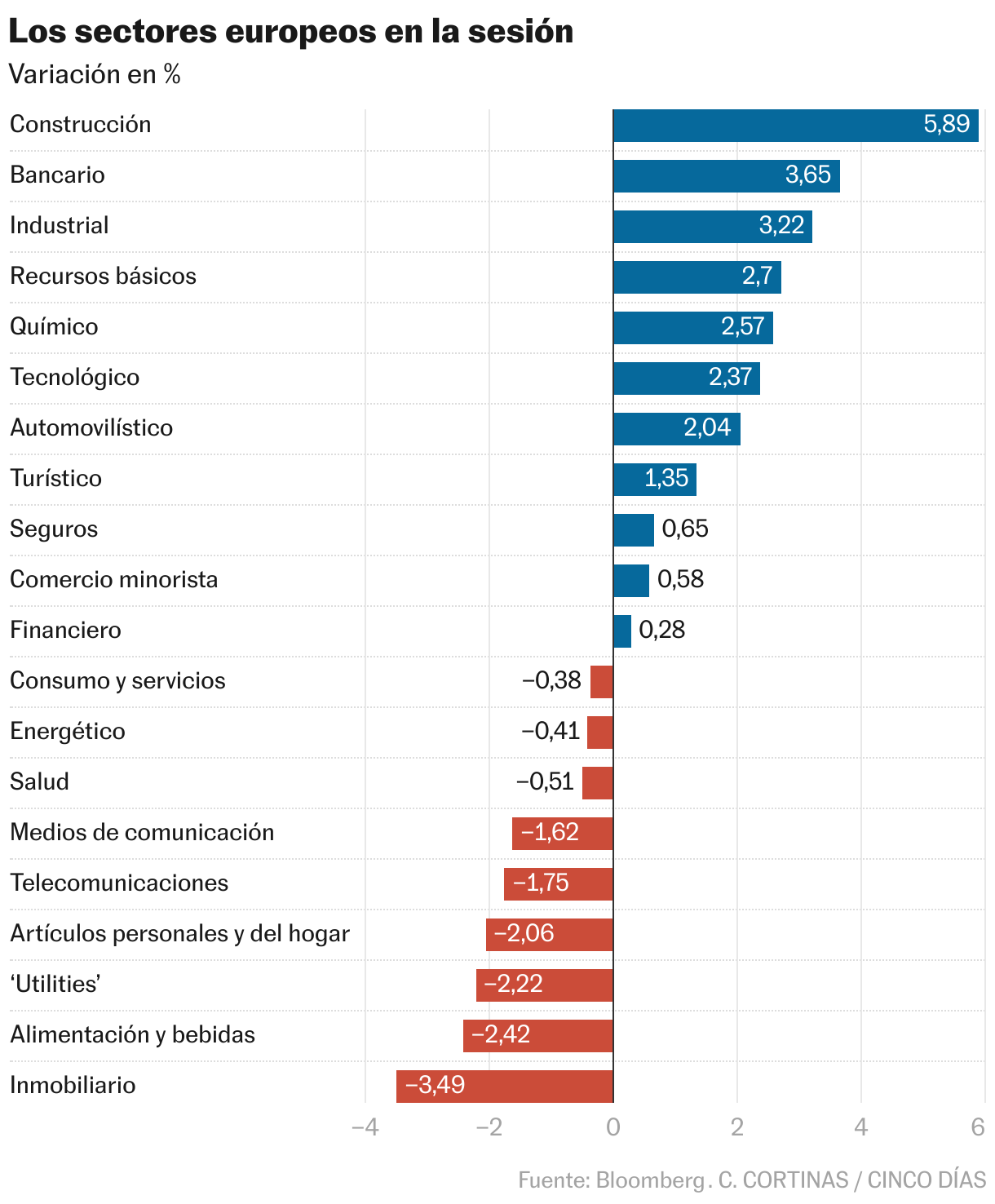 Las constructoras y los bancos lideran la ganancias de la renta variable europea