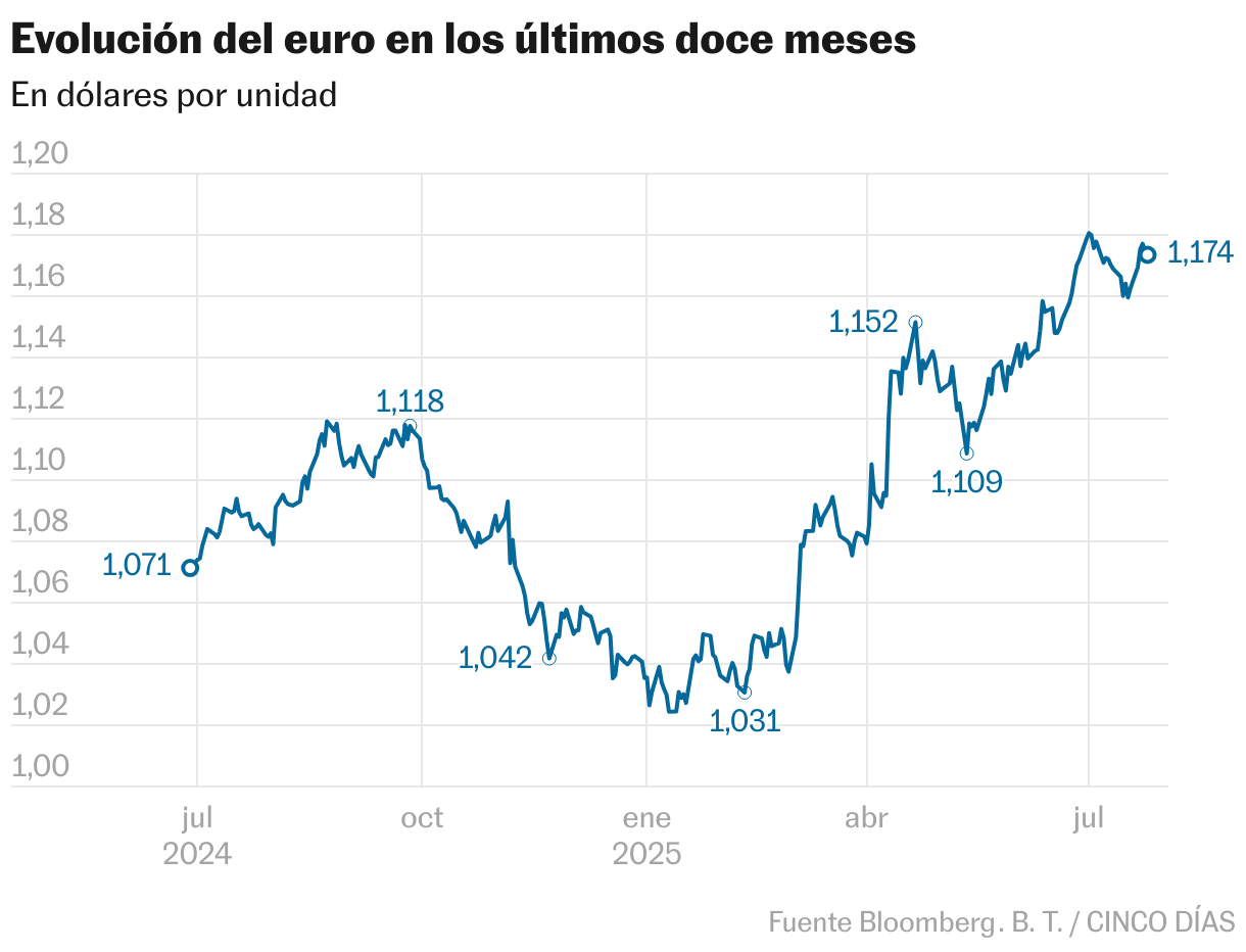La debilidad del dólar se ha convertido en una de las señas de identidad de 2025. Tras un breve repunte a finales de junio, coincidiendo con el aumento de las tensiones en Oriente Medio, el billete verde ha vuelto a encadenar caídas. Los ataques reiterados a la independencia de la Reserva Federal por parte de la Casa Blanca, el aumento del déficit fiscal y la incertidumbre arancelaria han impedido que la divisa estadounidense levante el vuelo. Pero la situación no parece preocupar a todo el mundo. De hecho, el presidente de EE UU, Donald Trump, la ha celebrado abiertamente.