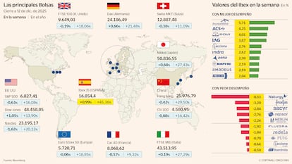 Las ganancias no son exclusivas de la Bolsa española. Aunque el Ibex duplica las subidas de los grandes índices europeos y figura entre los más alcistas del año —solo por detrás del Kospi surcoreano (+73,7%) y del KSE-100 de Pakistán (+47,7%)—, el impulso es generalizado. No obstante, en la última semana la renta variable ha experimentado fuertes bandazos. En un periodo marcado por el binomio tecnología–Reserva Federal, el Dax alemán ha logrado avanzar un 0,7% y el Mib italiano, un 0,2%. Más pobre aún fue comportamiento del Cac francés y el FTSE británico, que encajan recortes semanales del 0,6% y el 0,2% mientras el Euro Stoxx 50 concluye en tablas (-0,06%).