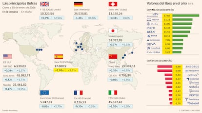 La banca sigue desafiando las previsiones que apuntaban a un ejercicio de consolidación, y el interés inversor por el sector se mantiene firme. Este impulso permite al selectivo español avanzar un 1,9% en la semana y cerrar el primer mes de 2026 con una subida del 3,3%. El Ibex mantiene así su liderazgo entre las Bolsas europeas, un puesto que ya conquistó en 2025. Desde que en octubre superó los máximos de 2007, el índice ha continuado escalando posiciones y se sitúa ya al filo de los 18.000 puntos.