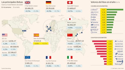 La semana ha sido de profunda inestabilidad para el Nasdaq, con altibajos a golpe de anuncios sobre la IA de las grandes corporaciones tecnológicas. En las últimas cinco sesiones se ha dejado un 1,4%, con una caída superior al 2% en lo que va de año. El S&P 500 retiene los avances en 2026, pero por la mínima (+0,4%), mientras que el Dow Jones es el que más colchón tiene al registrar un alza superior al 3% en el mes y medio bursátil del ejercicio.