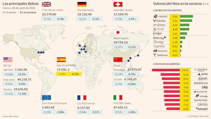 En este clima de recelo, el precio del petróleo ha retomado las subidas con fuerza: el brent ha cerrado la semana en 105,33 dólares por barril, el nivel más alto desde la primera tregua (el 7 de abril) y acumula una subida del 16,54 % en la semana, la mayor desde que empezó el conflicto, solo superada por el repunte de más del 25% registrado en los días inmediatamente posteriores al estallido de la guerra. Y, con los precios energéticos de nuevo al alza, las Bolsas retoman las caídas. Ha sido, también, la peor semana para el Ibex 35 desde el estallido del conflicto, con un retroceso del 4,3 %, tras caer más de un 1 % este viernes. En la semana que siguió al inicio de la contienda, el selectivo español se desfondó un 7%.