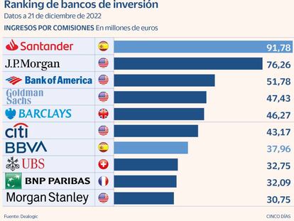 Citi, Bank of America y BNP Paribas se disputan la tercera plaza en un año en el que los ingresos por comisiones de las primeras 20 firmas caen un 5% respecto a 2024