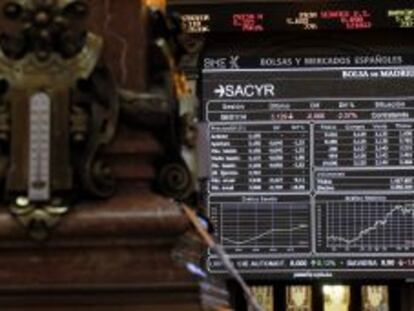 El Ibex corrige un 1,5% en la primera sesión de 2014. El dividendo de Endesa y las caídas de Sacyr (9%) y Bankia (4,2%) dejan al selectivo en los 9.760 puntos. La deuda, por su parte, marca mínimos en los títulos a más corto plazo y la prima cae a niveles de mayo de 2011.