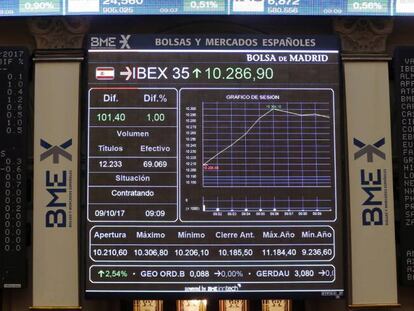 El Ibex responde al 155 y a la convocatoria de elecciones con un alza del 2,44% Los analistas esperan que el selectivo repunte y reduzca la brecha con sus vecinos europeos