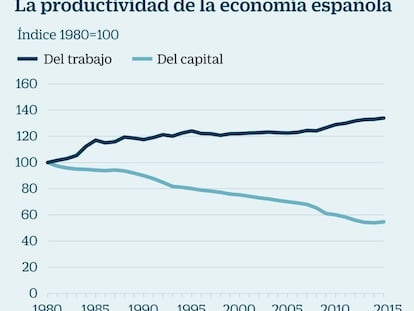 La productividad total de los factores se sitúa un 44% por debajo del nivel de EE UU La productividad del capital retrocede un 2% al año en el siglo XXI
