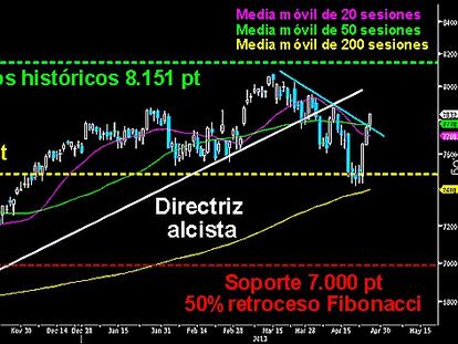 Mayo deja un nueva decepción alcista en el selectivo español. Los 8.625 puntos no han sido conquistados a cierre mensual. Las opciones bajistas de volver a asaltar los 7.700 ganan enteros.