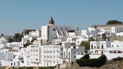 Este pueblo gaditano está encaramado en una colina donde crecen pinos y acebuches. El arenal de El Palmar aporta aire marino.