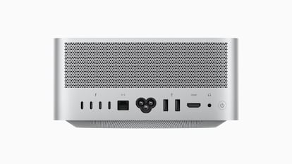 A nivel estético, lo cierto es que el trabajo vuelve a ser impecable. Y es que el Mac Studio presume de una carcasa de aluminio y todo tipo de opciones de conectividad, como verás más adelante.