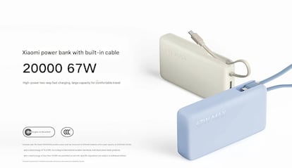 Xiaomi presume de un catálogo de productos de lo más variado, más allá de teléfonos y tablets. Y ahora la firma acaba de presentar una nueva batería externa de 20.000 mAh con carga rápida de hasta 67 W y cable USB-C incorporado.