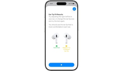 Hasta ahora, los AirPods Pro contaban con la función Ear Tip Fit Test, que analizaba si las almohadillas ofrecían un buen aislamiento. Con los AirPods Pro 3, Apple estrena el Acoustic Seal Test, disponible en iOS 26 y iPadOS 26.