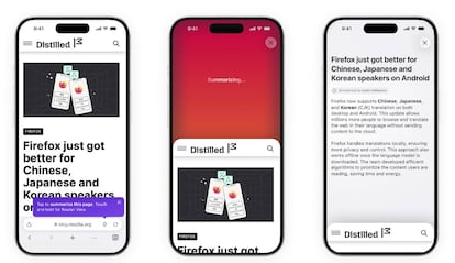 ¿Y si no tienes un teléfono compatible con Appple Intelligence? En otros modelos o versiones anteriores, el texto se enviará de forma segura a los servidores de Mozilla, donde se utilizará IA en la nube para generar el resumen antes de devolverlo al navegador.