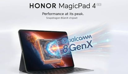El otro gran protagonista es el procesador. Todo apunta a que contará con el Snapdragon 8 Gen 5, el último chip de alto rendimiento de Qualcomm. La firma tiene un cartel donde deja claro que es un Snapdragon 8 GenX, por lo que todo apunta en esa dirección, posicionando a la Honor MagicPad 4 se colocaría entre las tablets más potentes del momento.